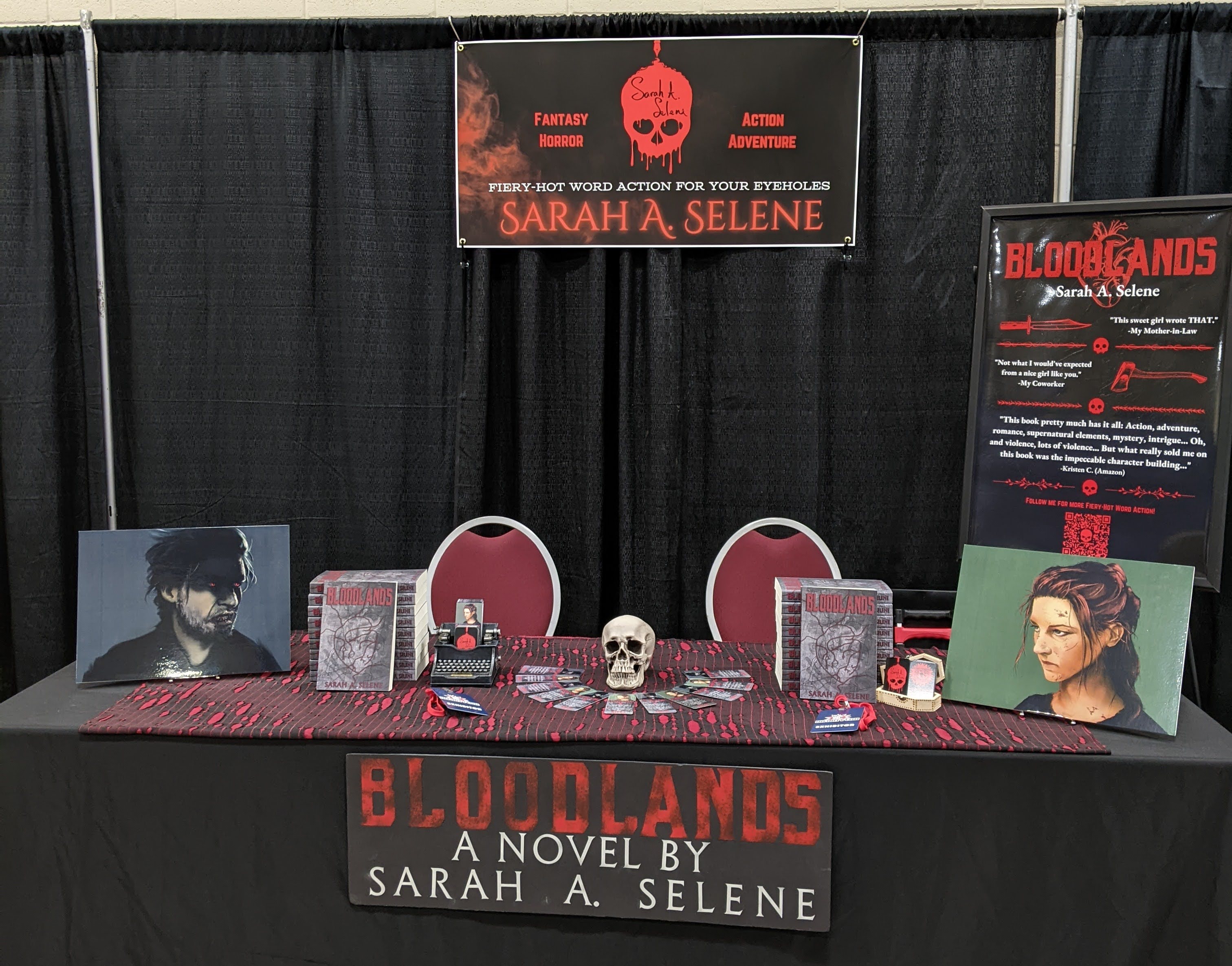 InfinityCon has come and gone–at least for 2023. If you follow me on social media, you probably got sick of all the pictures, but just in case you missed it, here’s the table set-up, complete with new branding. The new banner got people’s attention, and the review poster helped to hold it. Mission successful!